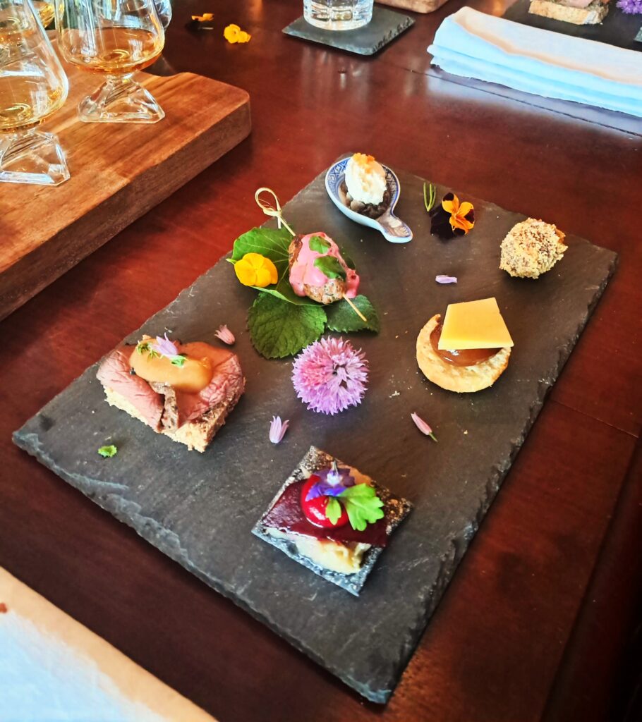 Each paired bite is crafted with passion and imagination. Seasonal ingredients are thoughtfully chosen and carefully combined to create the perfect taste pairing for each unique whiskey sample. Complementary flavours and the freshest ingredients sourced and foraged locally by local food artisans Mary Kinsella & Tina Ramirez.